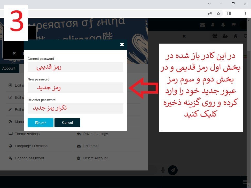 عوض کردن رمز عبور در چت روم شامل 3 مرحله بسیار ساده می باشد که در بخش زیر توسط یکی از مدیران سایت برای شما آموزش داده شده است