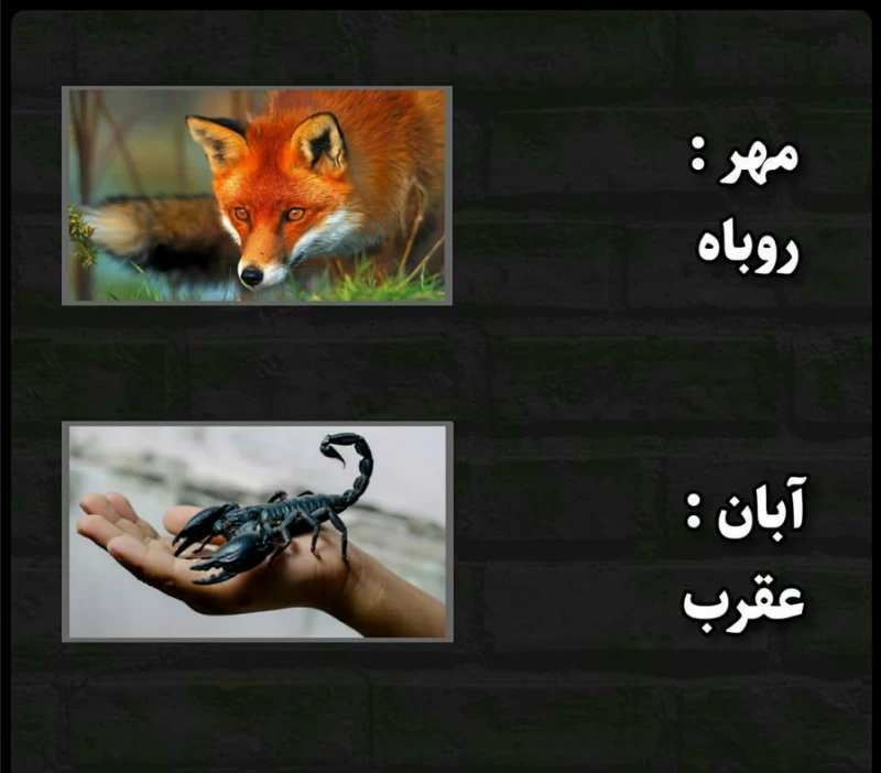 Topaz ارسال شده در 13 آبان، 2023 ارسال شده در 13 آبان، 2023 27 دقیقه قبل، حسین138 گفته است: در طالع بینی حیوانی هرکدام از دوازده ماه سال به یک حیوان اختصاص دارد و با توجه به حیوان سمبل آن در مورد شخصیت و ویژگی های متولدین هرماه توضیحاتی داده شده است. نمیشه حیوان ماه تولد رو با ماه بهمن عوض کنم 1 1 1 نقل قول